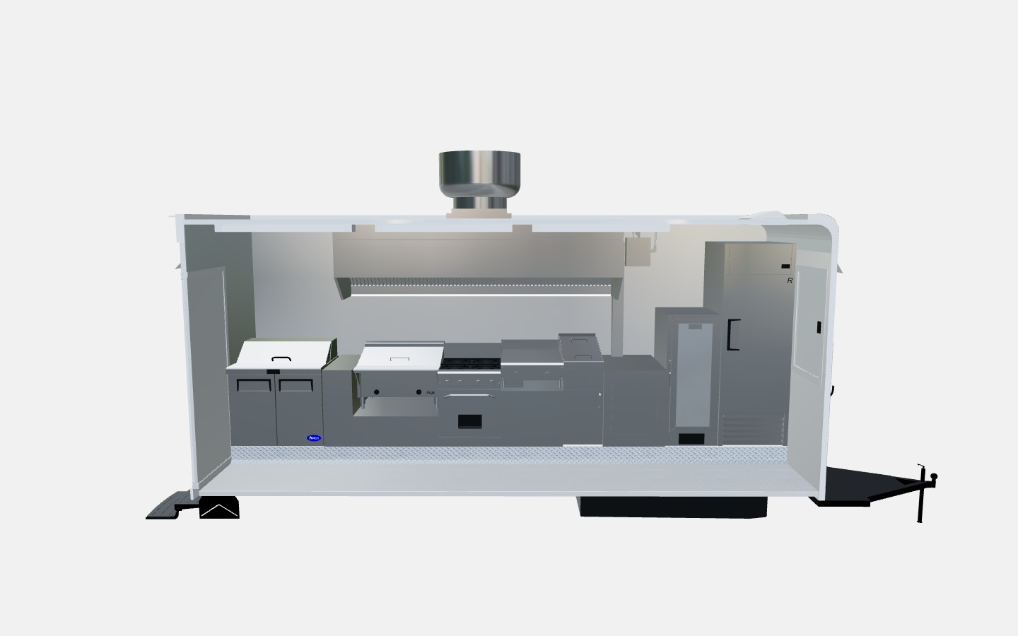 Before construction begins, customers can design and review their kitchen layout using our 3D food trailer configurator. This allows operators to adjust equipment placement and confirm workflow before production starts.