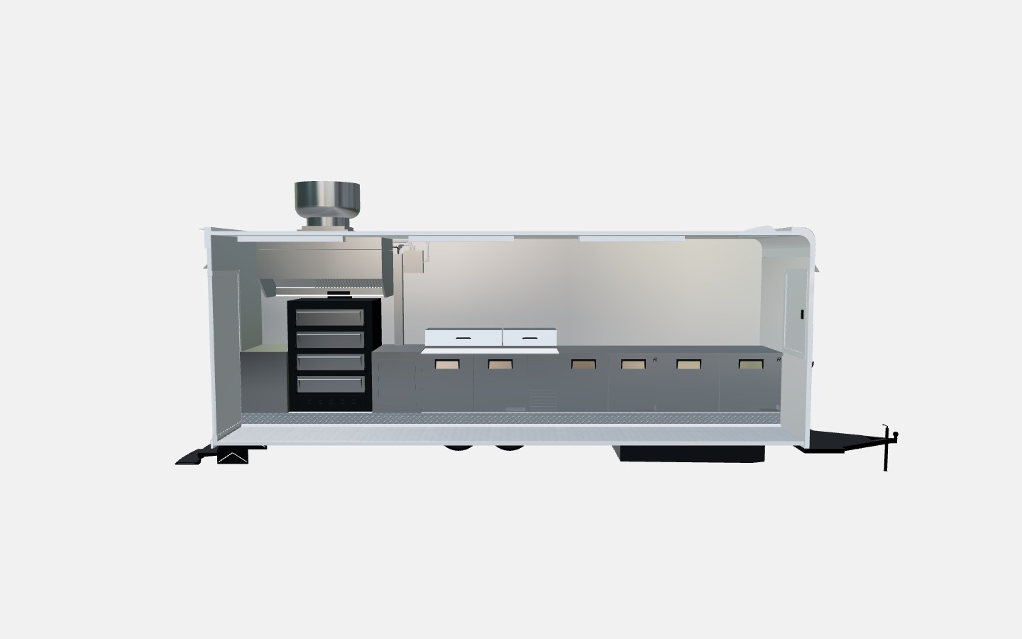 Before construction begins, the layout can be reviewed using our 3D food trailer configurator. This allows customers to confirm equipment placement and workflow before production starts.