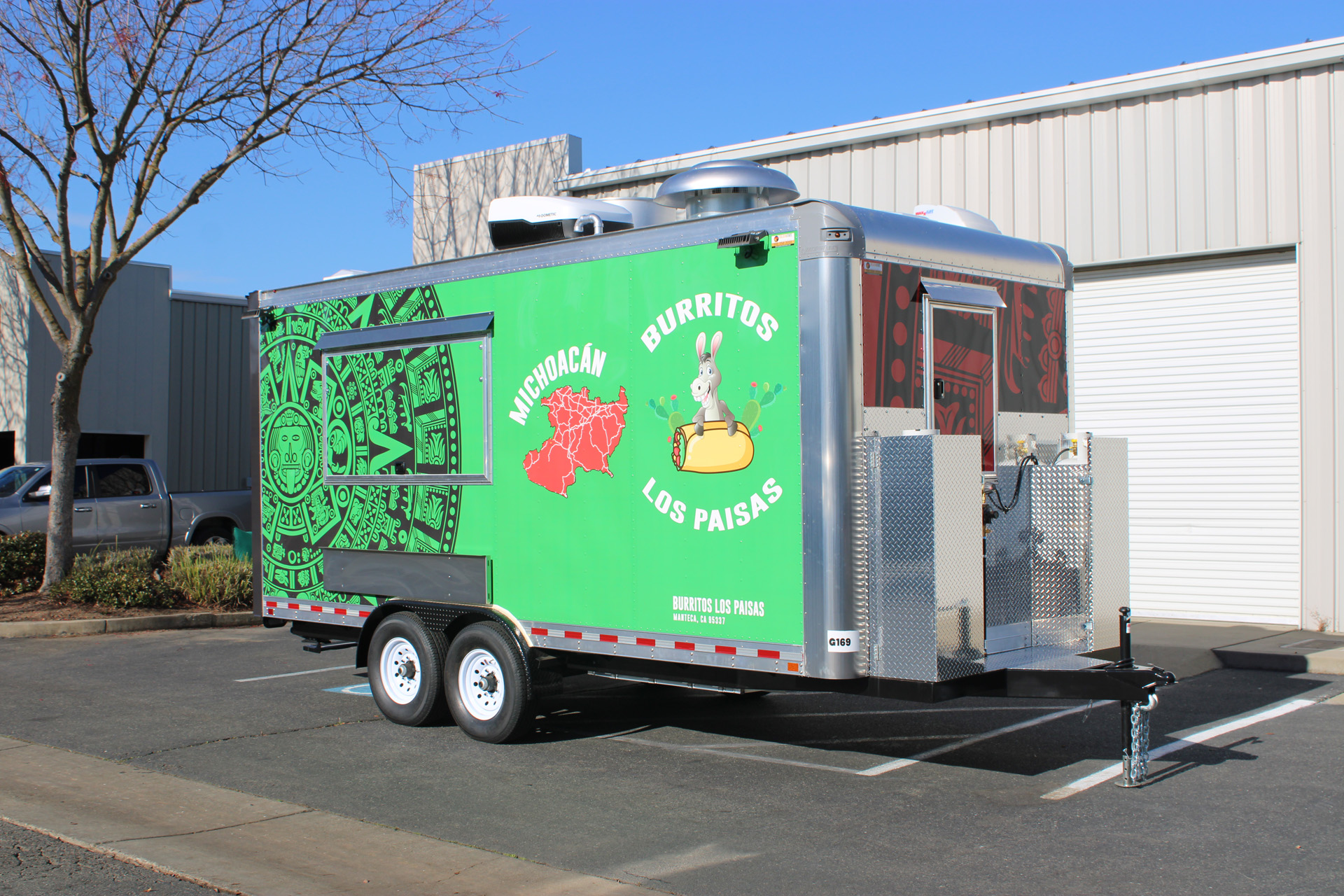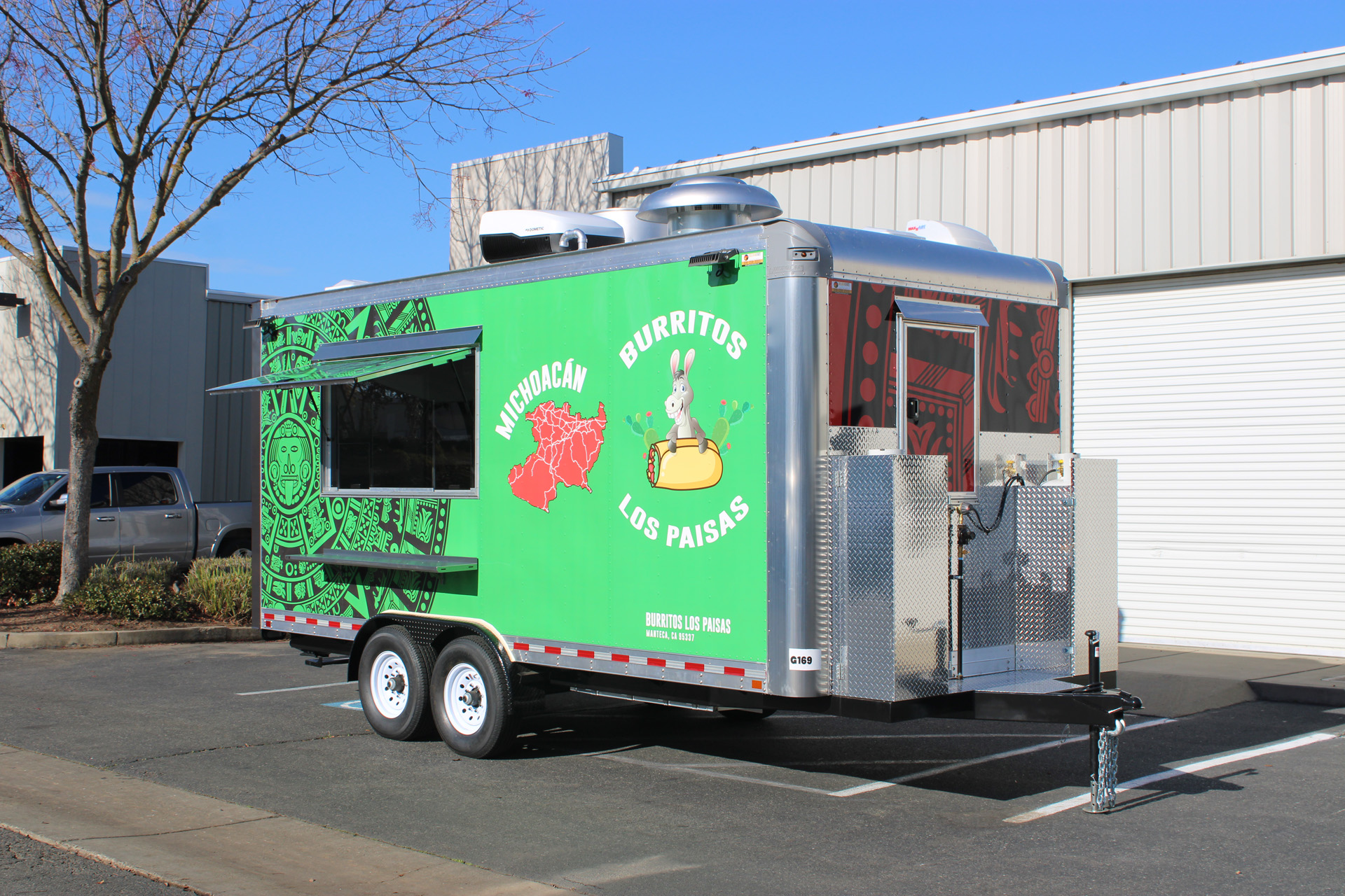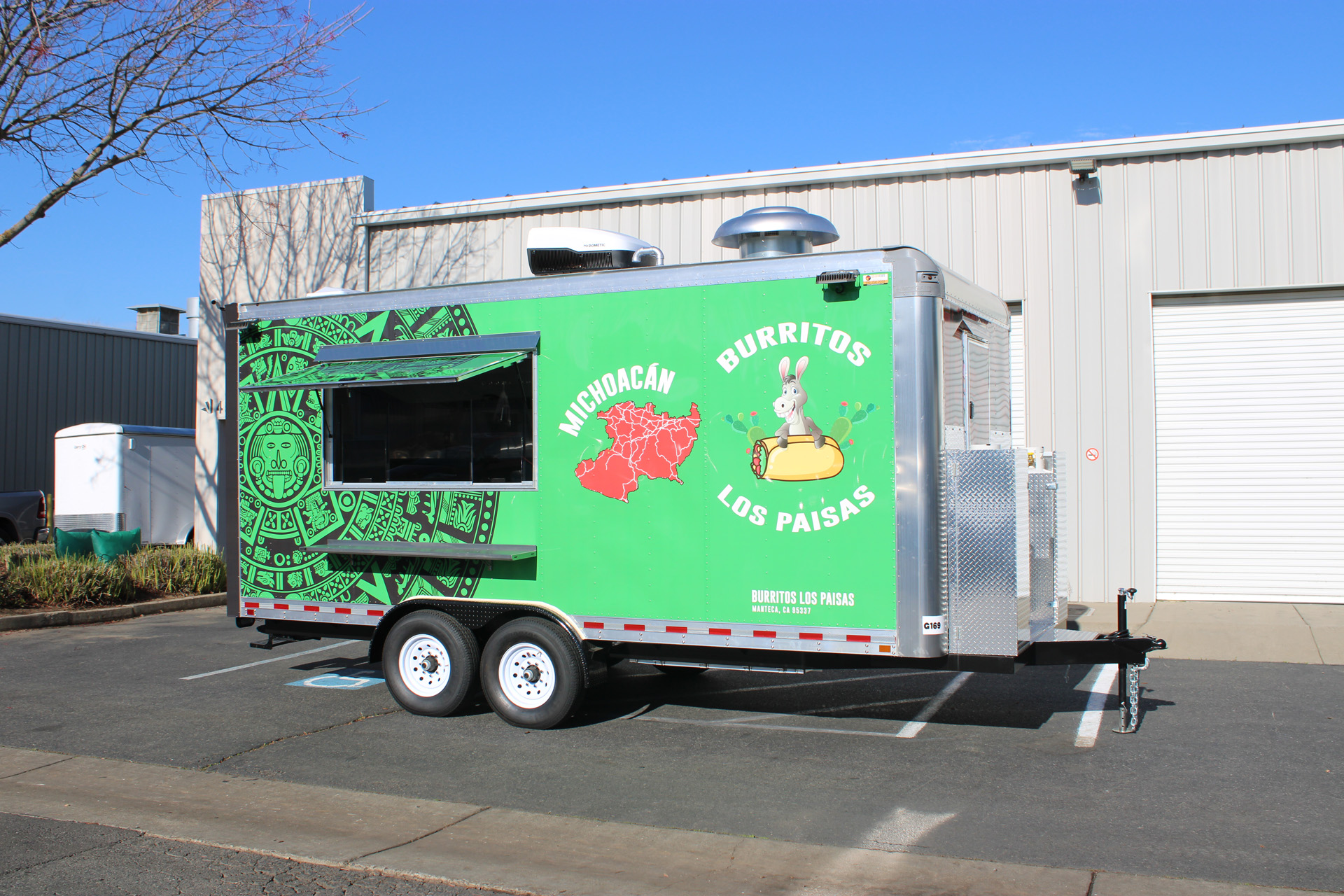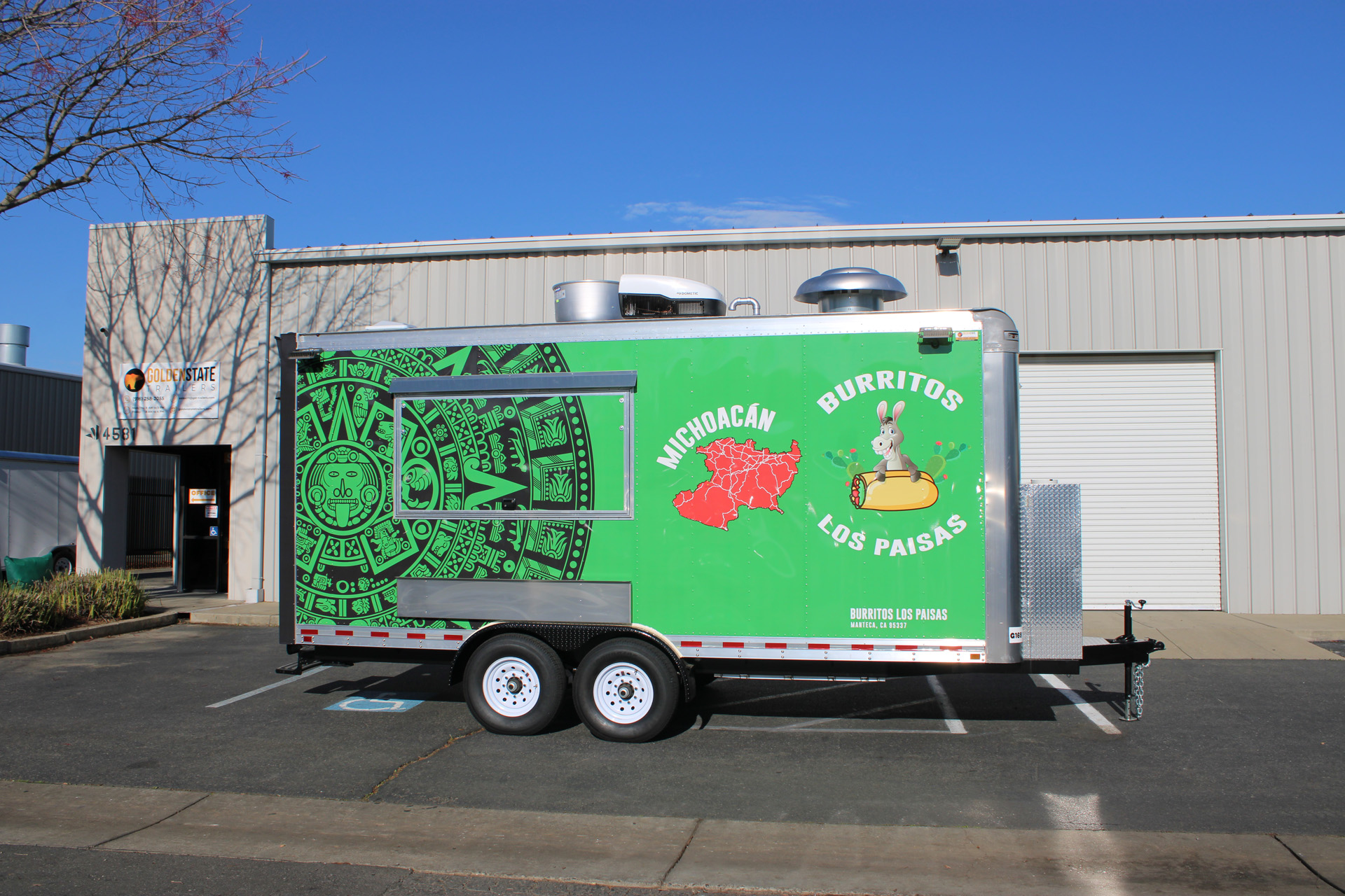 Burritos Los Paisas is a custom-built 18ft Burrito Food Trailer, designed and manufactured by Golden State Trailers in 2024. The project focused on efficiency, durability, and functionality to support high-volume food service. The trailer includes a professional kitchen setup with a grill, fryer, refrigerators, exhaust hood, and stainless-steel work surfaces. The layout was optimized for quick burrito and taco assembly, ensuring smooth workflow during peak service hours. This project showcases how smart design and craftsmanship can deliver a fully functional mobile kitchen that meets all health and safety standards. Learn more about our Taco Food Trailers and Mexican Food Trailer builds.