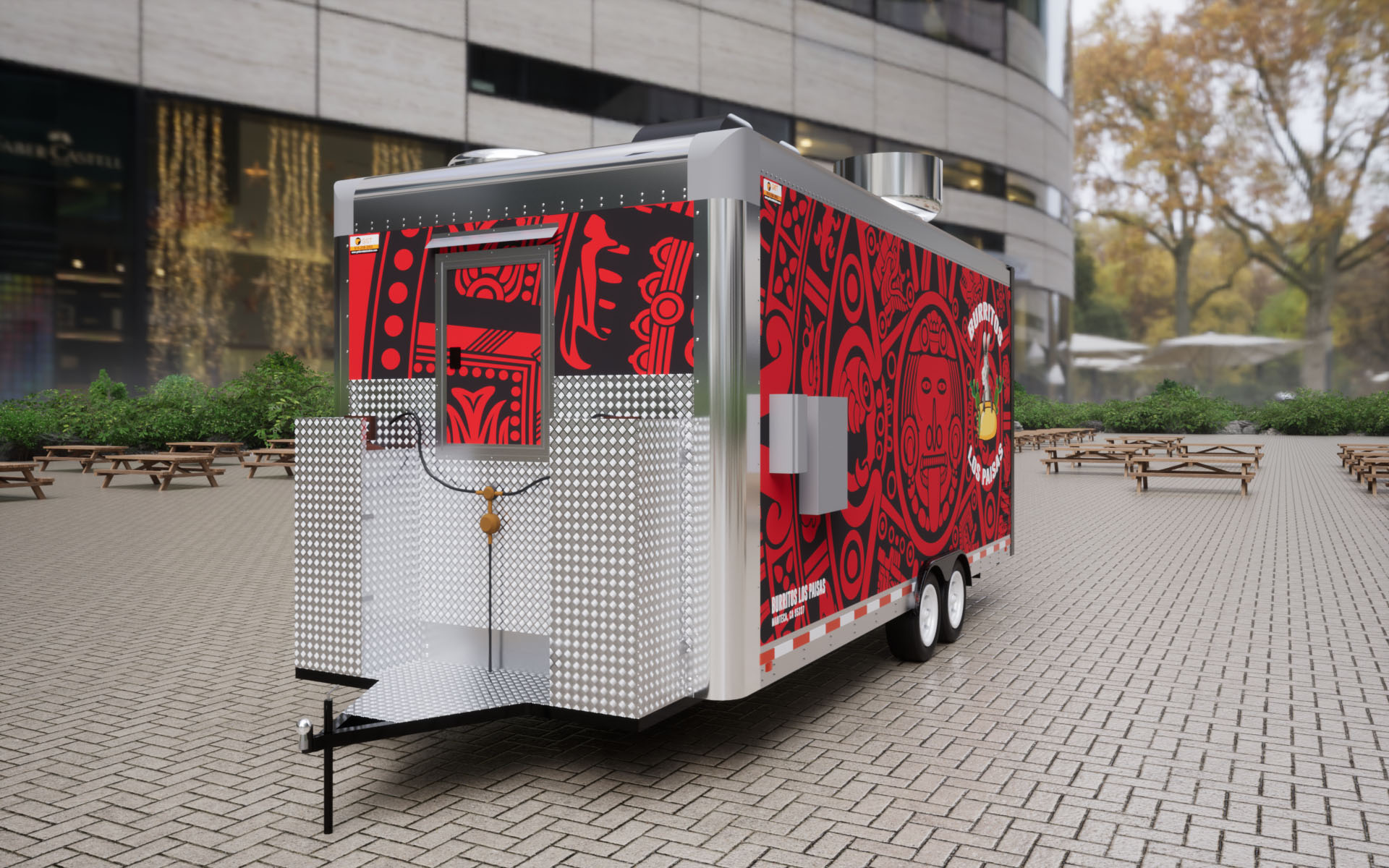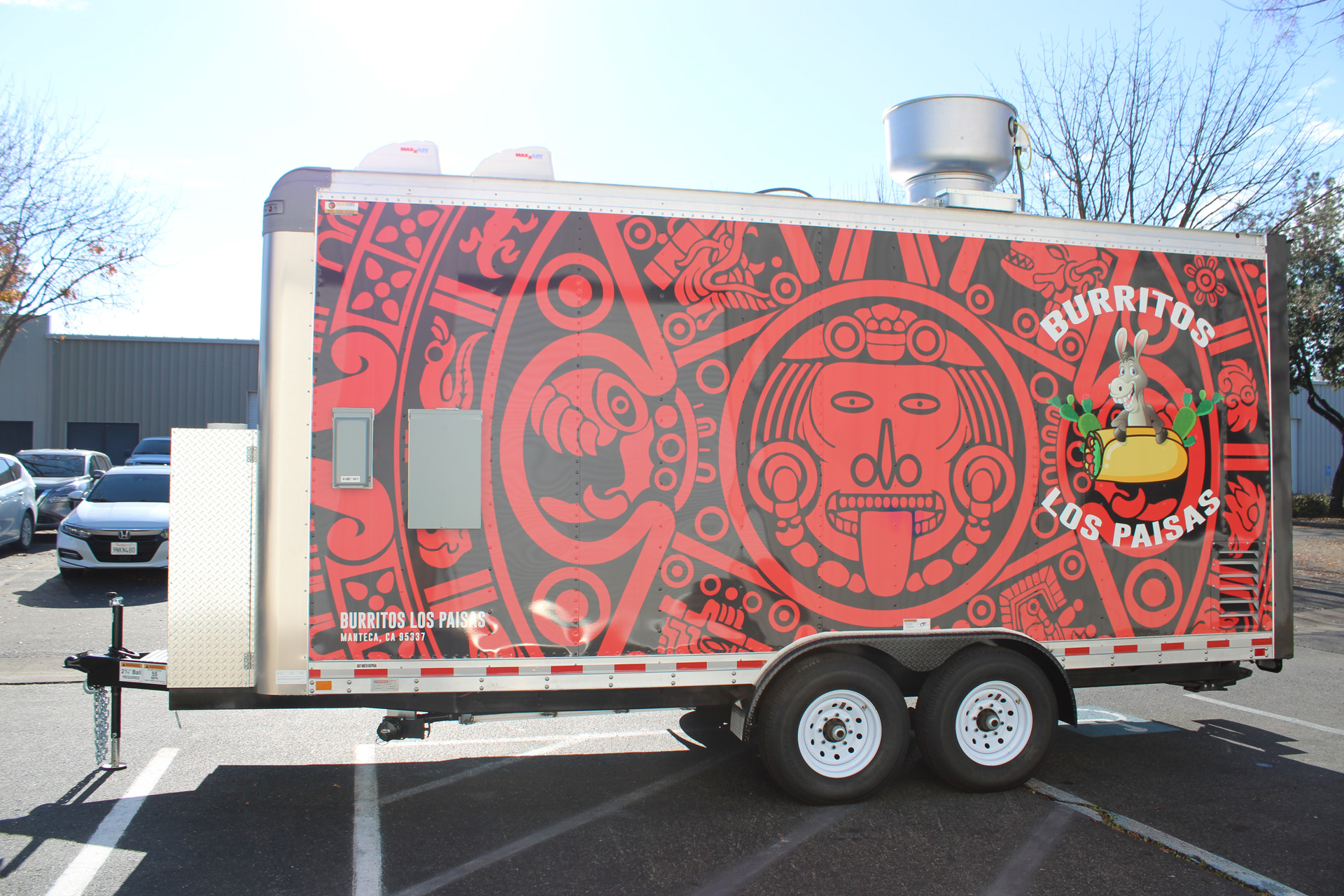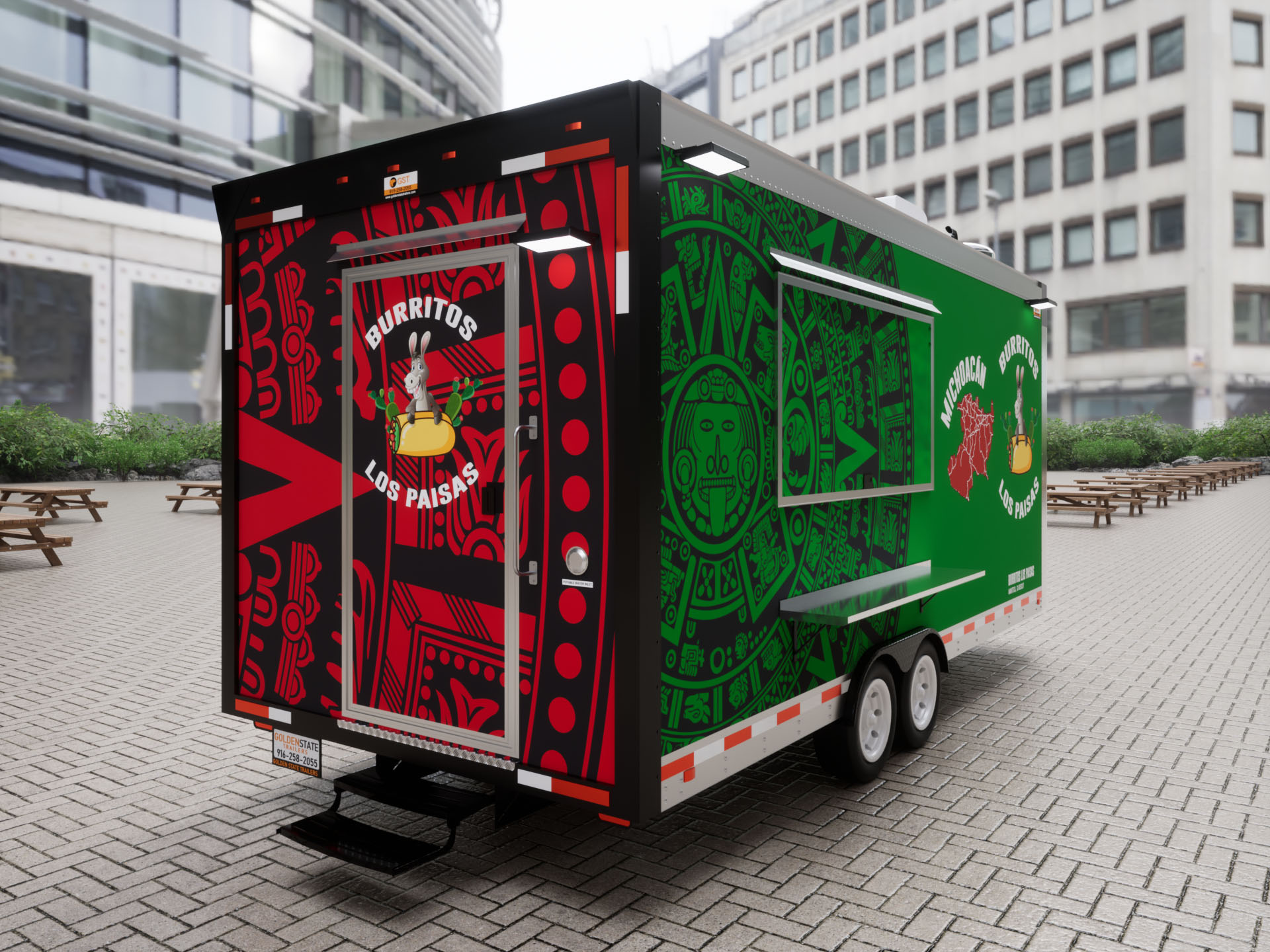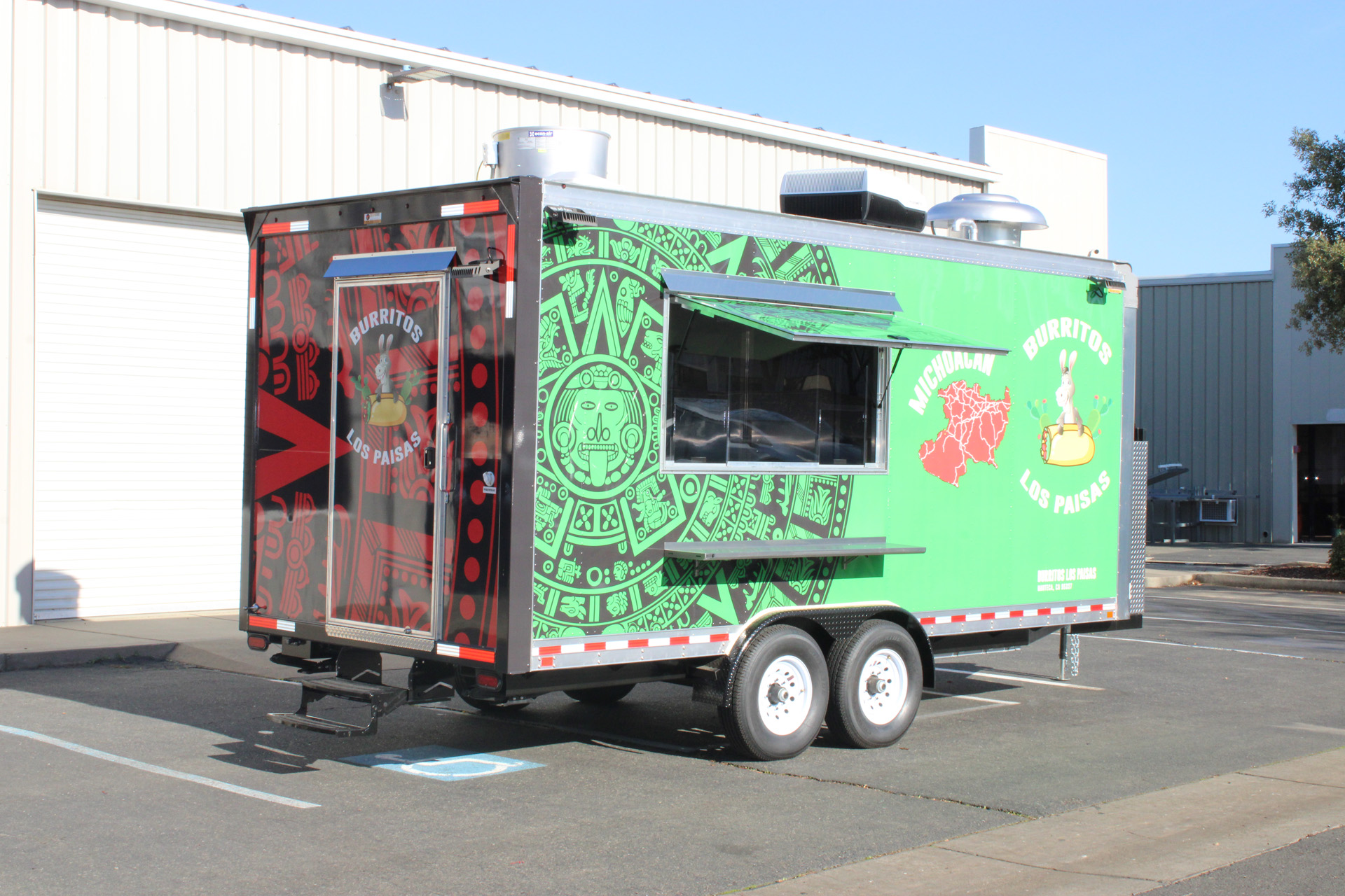 Burritos Los Paisas is a custom-built 18ft Burrito Food Trailer, designed and manufactured by Golden State Trailers in 2024. The project focused on efficiency, durability, and functionality to support high-volume food service. The trailer includes a professional kitchen setup with a grill, fryer, refrigerators, exhaust hood, and stainless-steel work surfaces. The layout was optimized for quick burrito and taco assembly, ensuring smooth workflow during peak service hours. This project showcases how smart design and craftsmanship can deliver a fully functional mobile kitchen that meets all health and safety standards. Learn more about our Taco Food Trailers and Mexican Food Trailer builds.