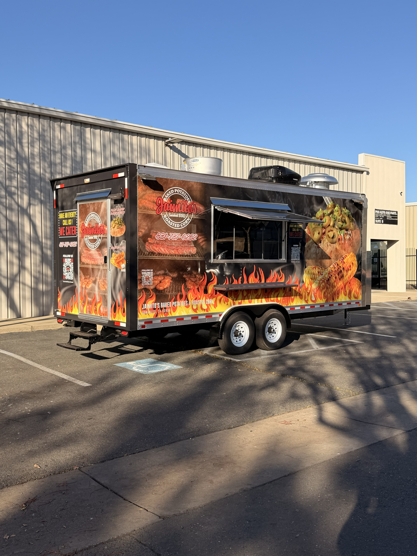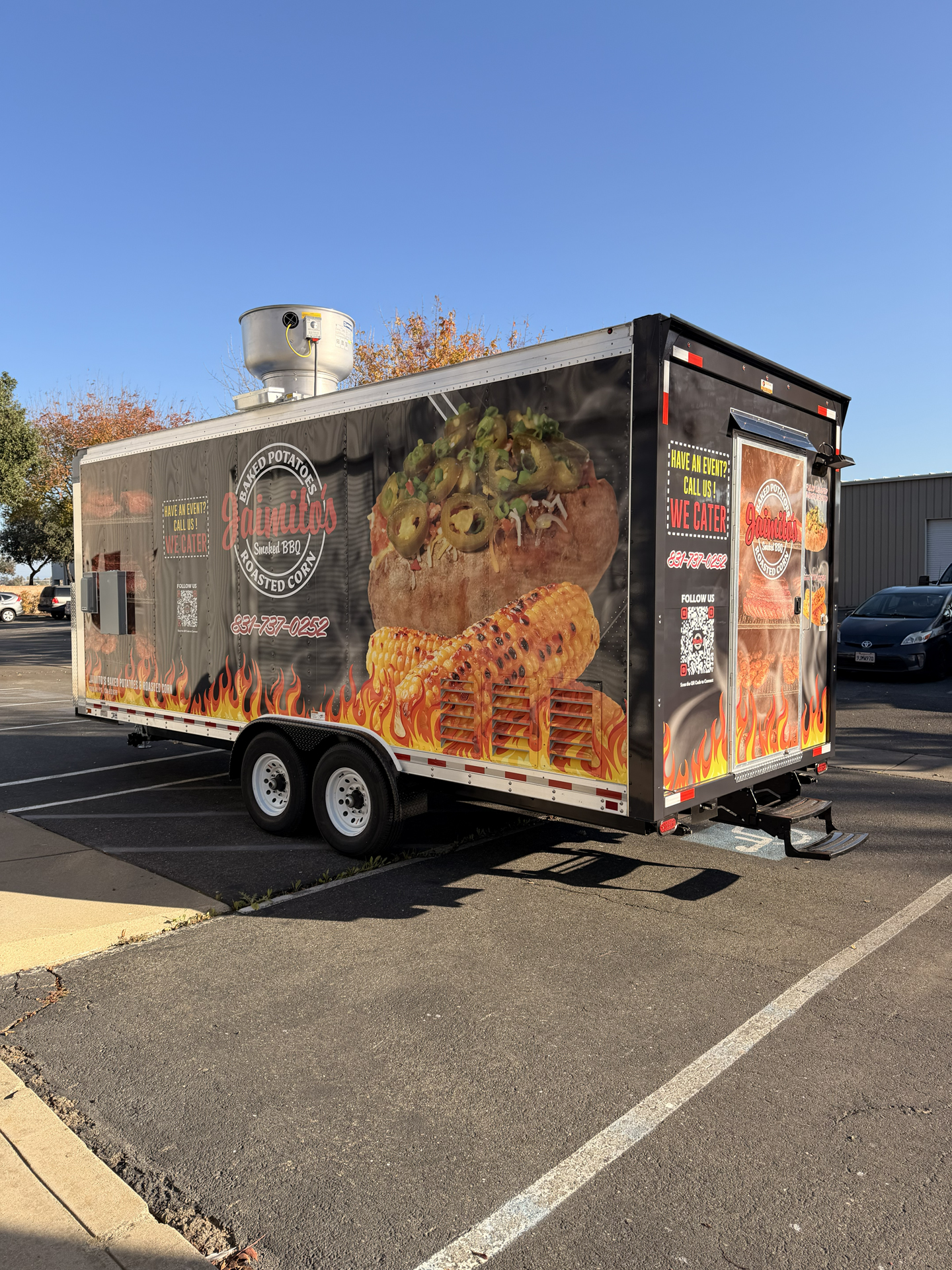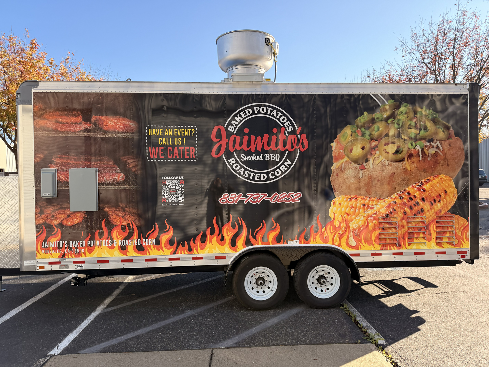 Jaimito’s baked potatoes and roasted corn is a street food concept based in Gonzales, California, specializing in BBQ-style baked potatoes and fire-roasted corn prepared in a mobile format.
