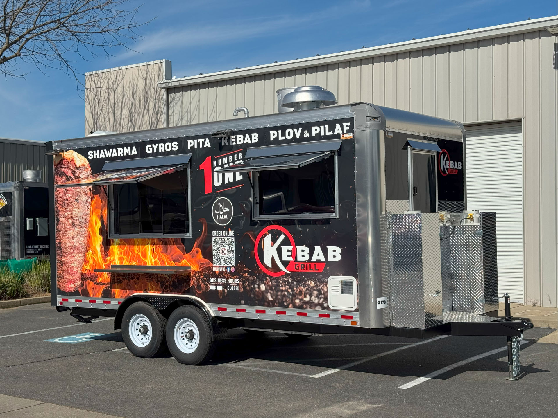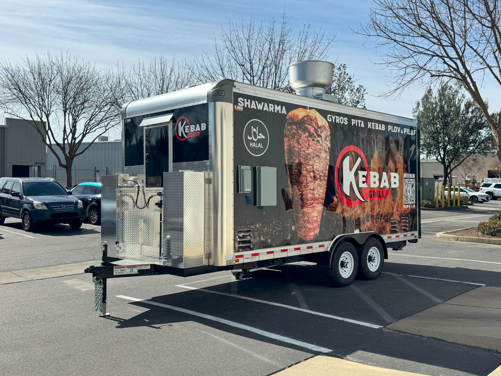 Golden State Trailers engineered a custom 18ft Shawarma Food Trailer for Kebab Grill, purpose-built for mobile service and catering.