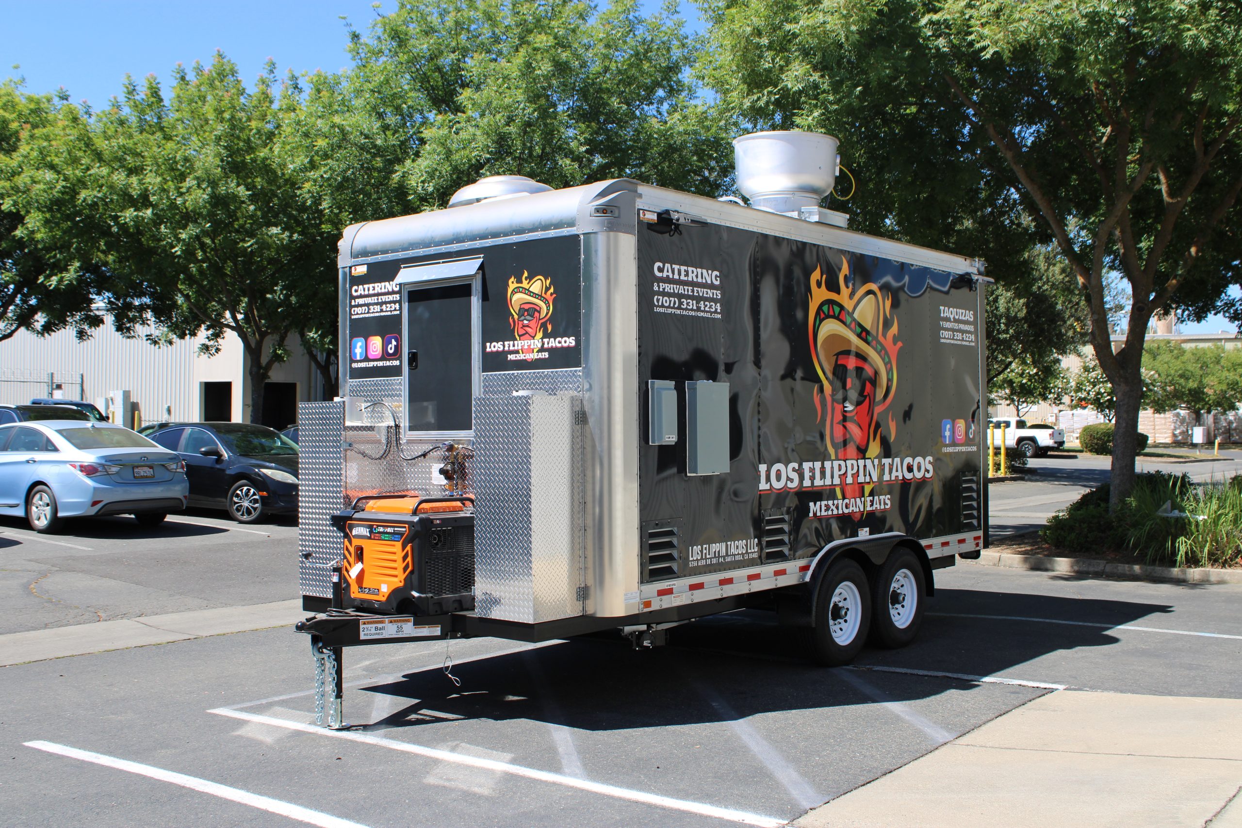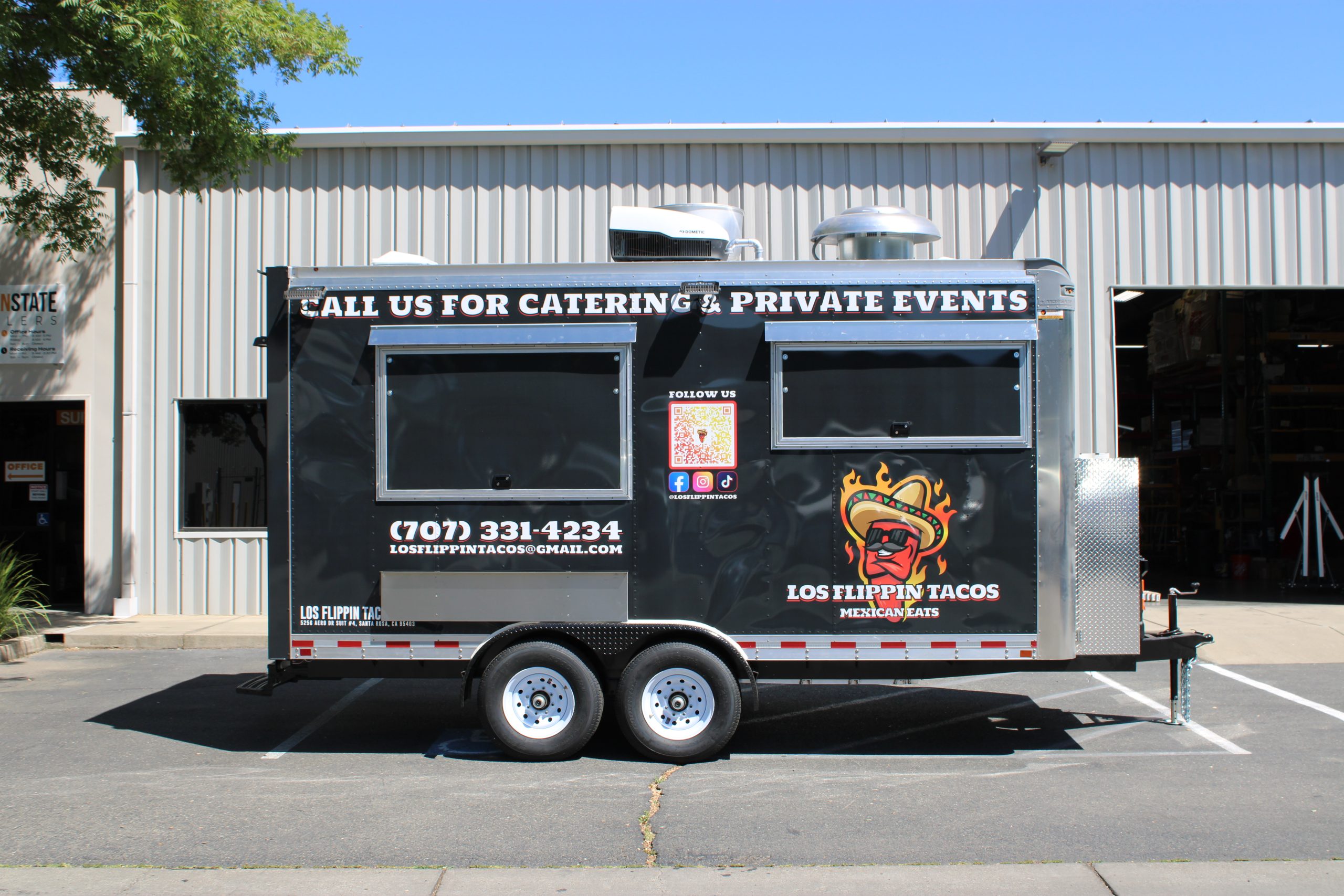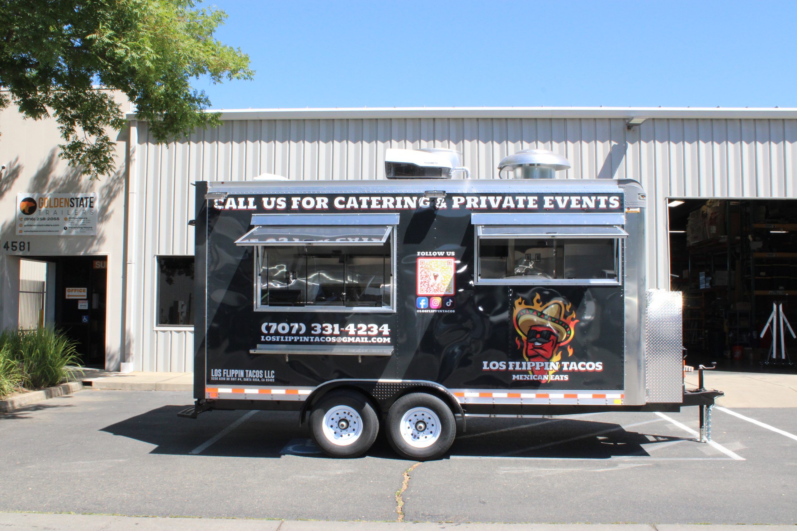 Golden State Trailers designed and built a 16ft Taco Food Trailer for Los Flippin Tacos, engineered for authentic street taco service and high-volume catering.