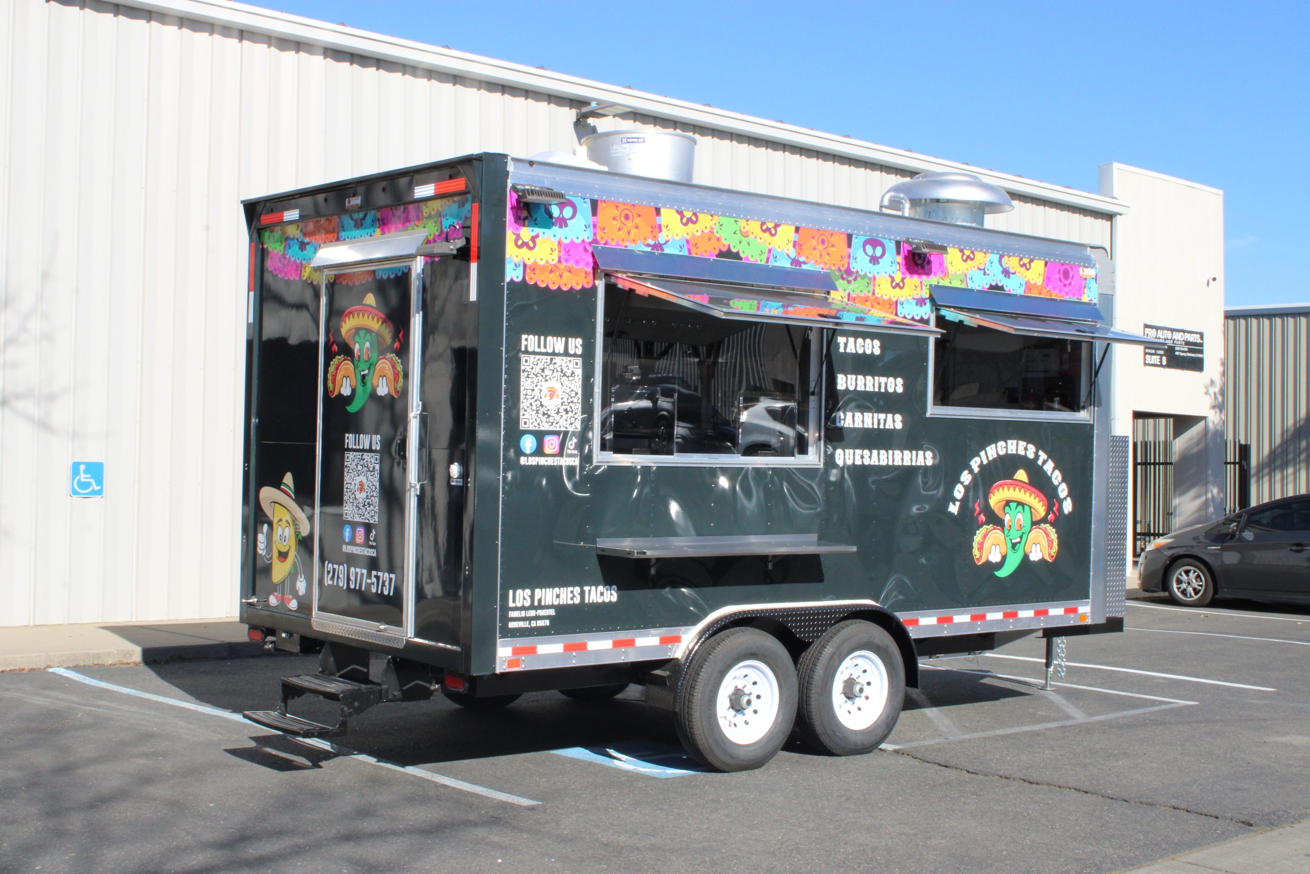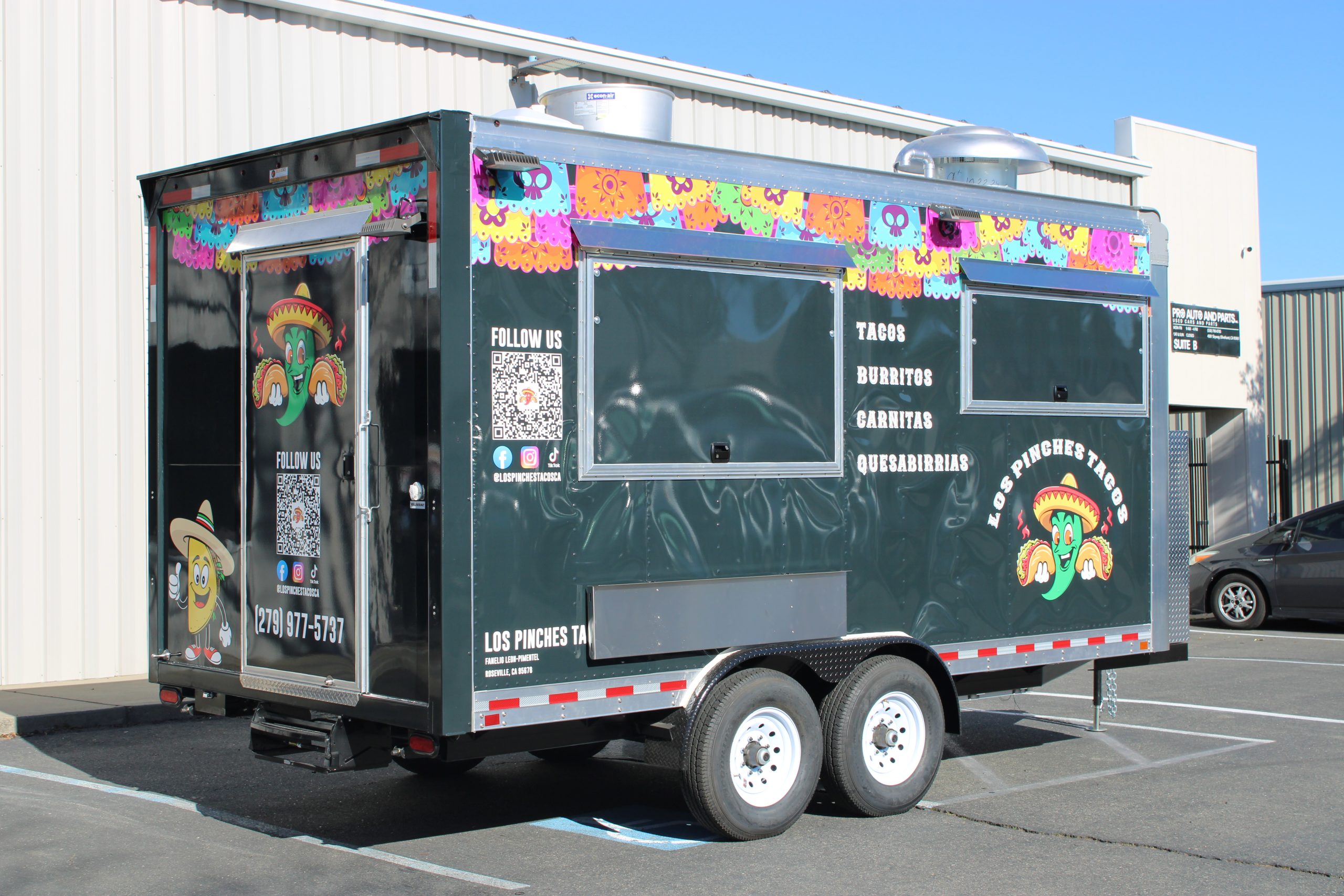 Golden State Trailers designed and built a 16ft Taco Food Trailer for Los Pinches Tacos, optimized for street-taco service.