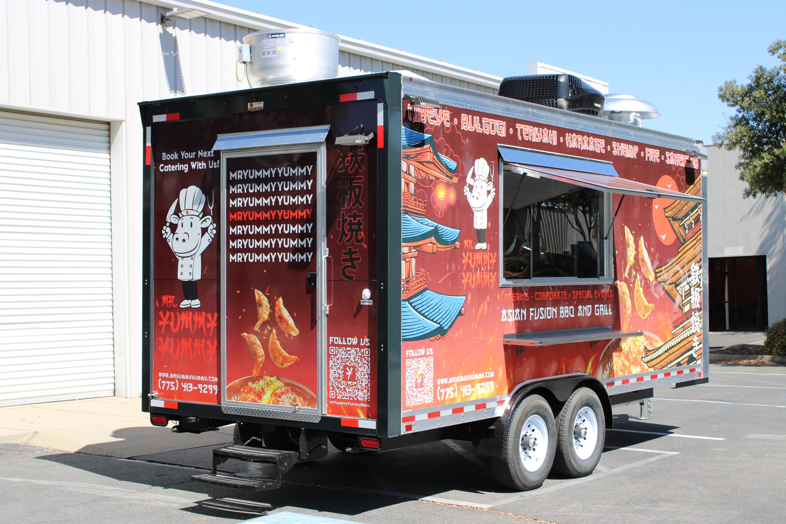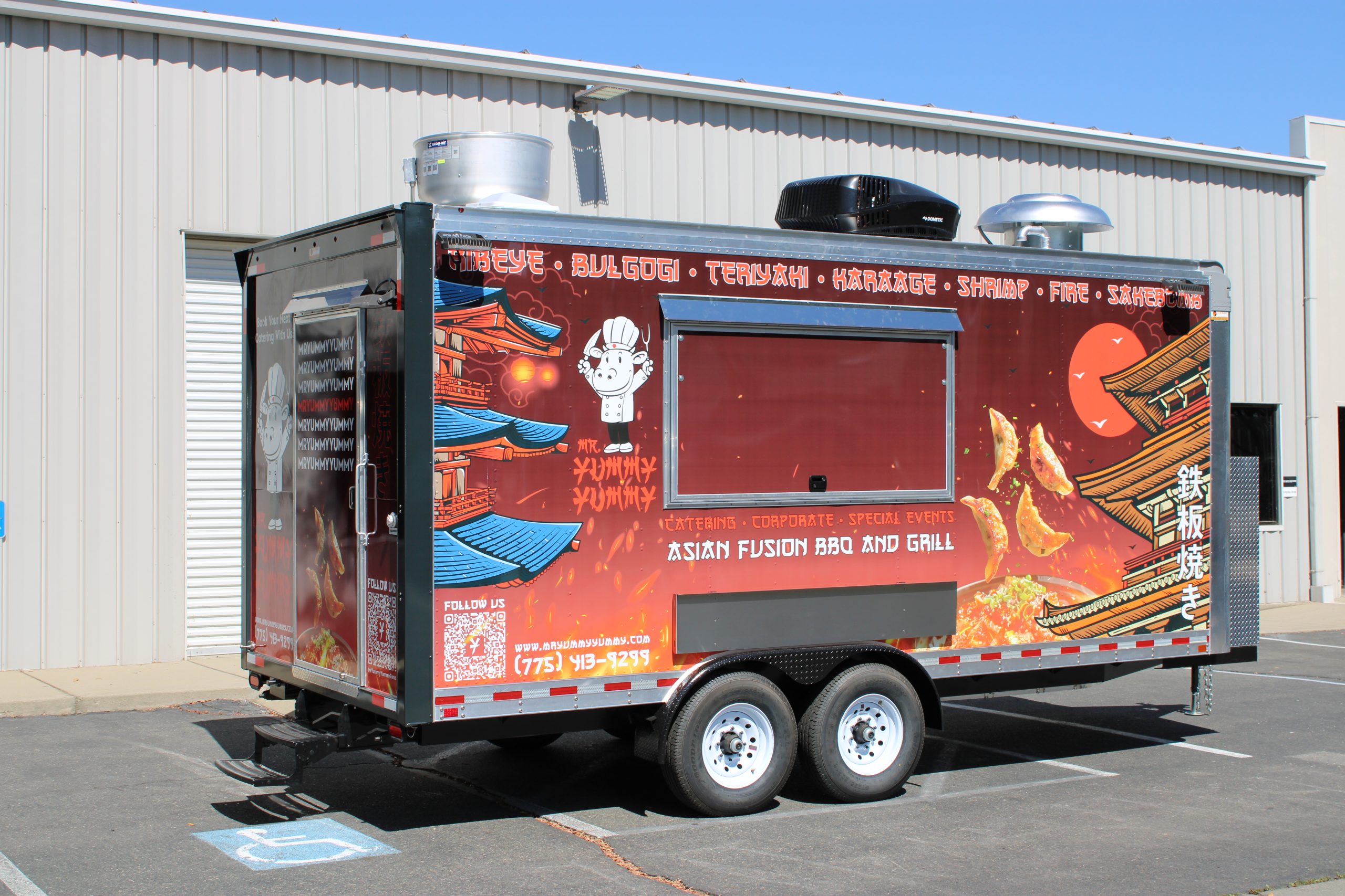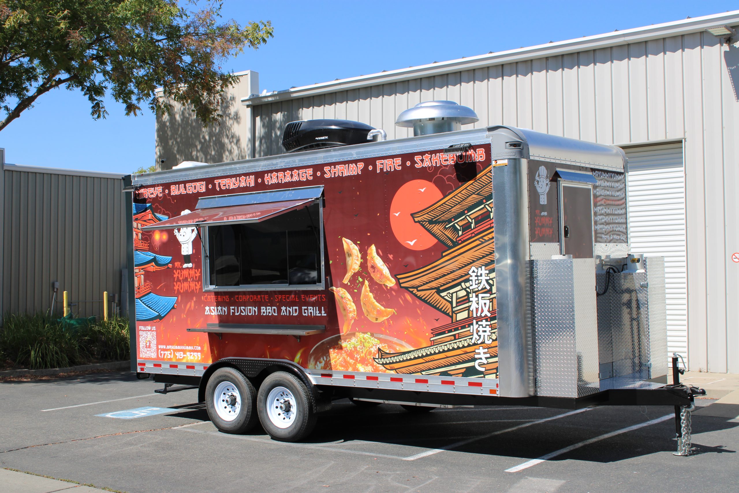 Golden State Trailers crafted an 18 ft Hibachi Food Trailer for Mr. Yummy Yummy, optimized for Japanese BBQ and hibachi performance cooking.
