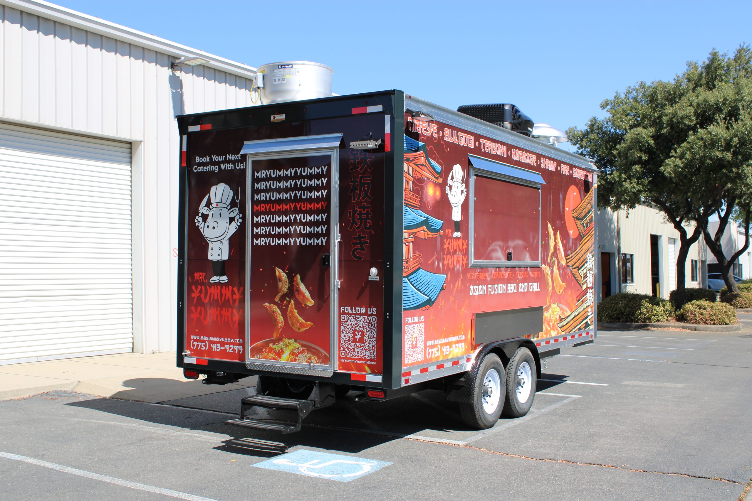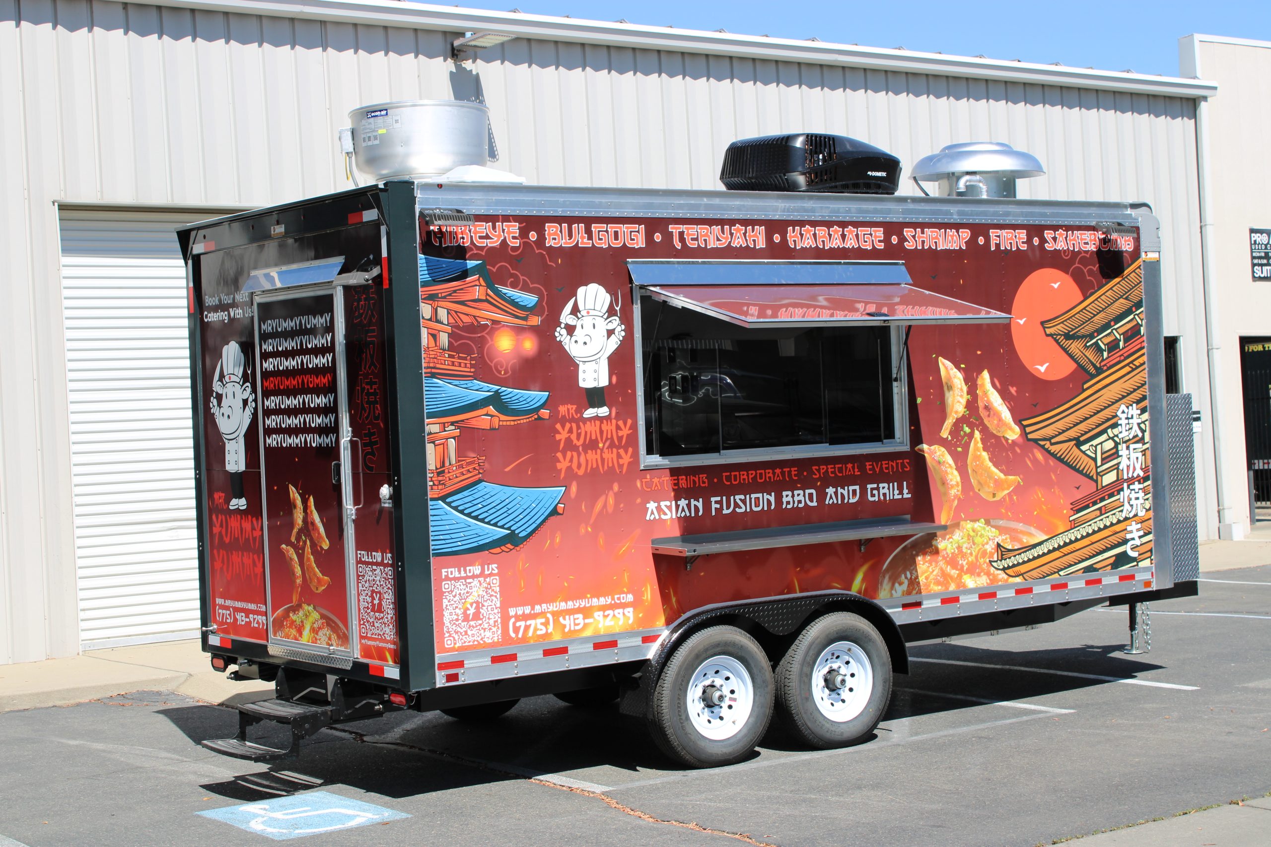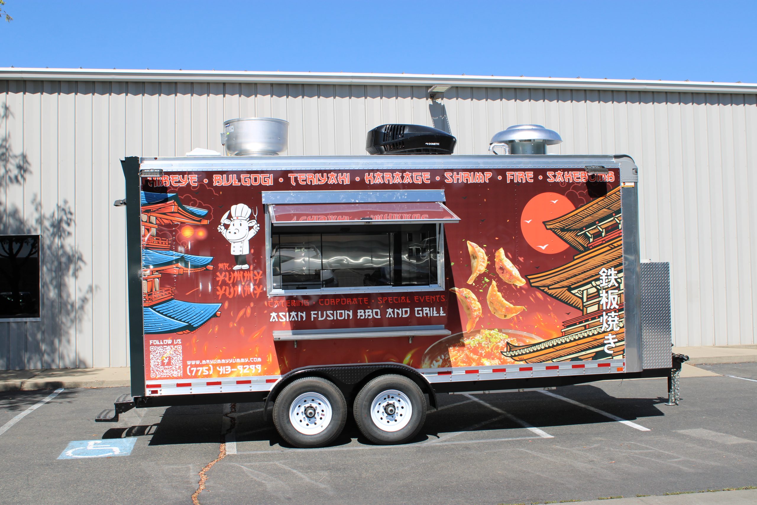 Golden State Trailers crafted an 18 ft Hibachi Food Trailer for Mr. Yummy Yummy, optimized for Japanese BBQ and hibachi performance cooking.
