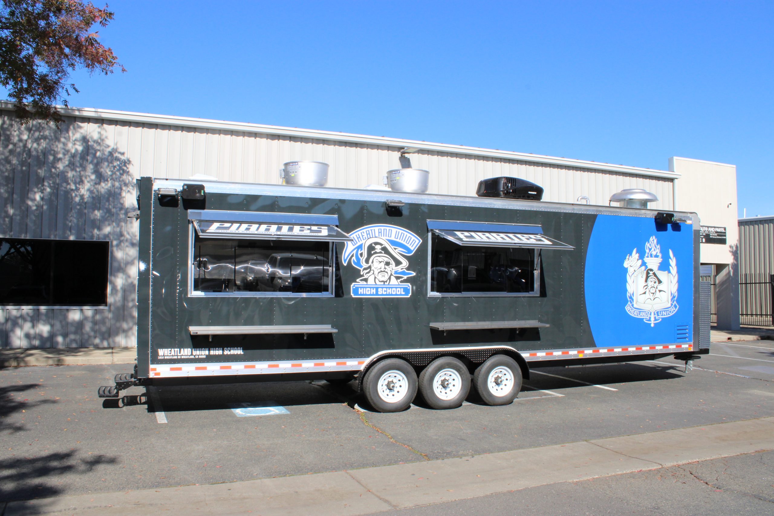 Golden State Trailers designed and built a custom 30 ft school concession trailer for Wheatland Union High School, engineered for high-volume service during athletic events and large campus gatherings. The concession trailer was equipped with a flat top, fryer, warming equipment, refrigeration, stainless steel prep tables and a complete hood and ventilation system. Power flexibility was built in to support both generator and shore power operation, ensuring reliable performance across different event setups. The 30 ft layout was selected to accommodate multiple service workflows, fast order turnaround and efficient staff movement during peak game times.