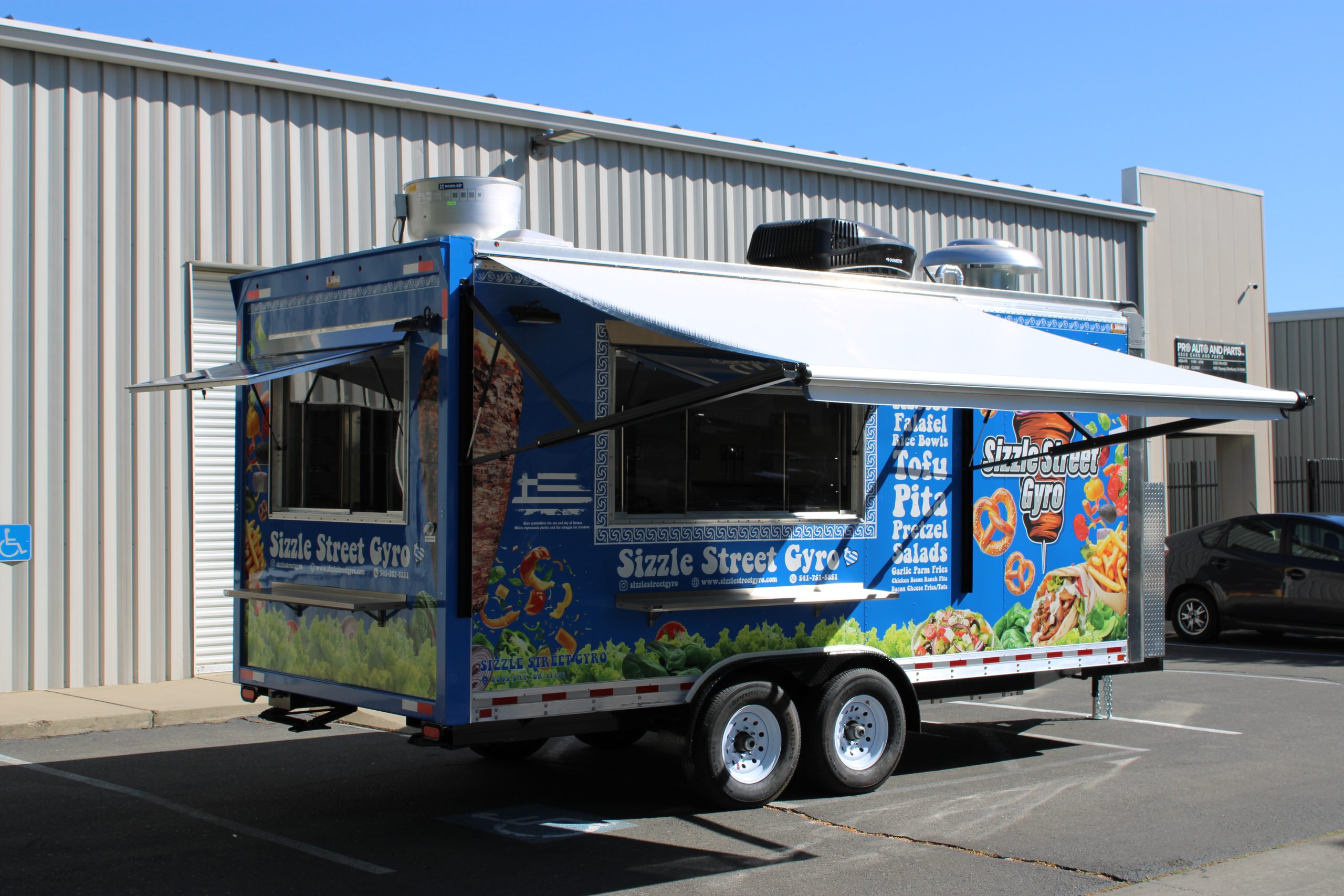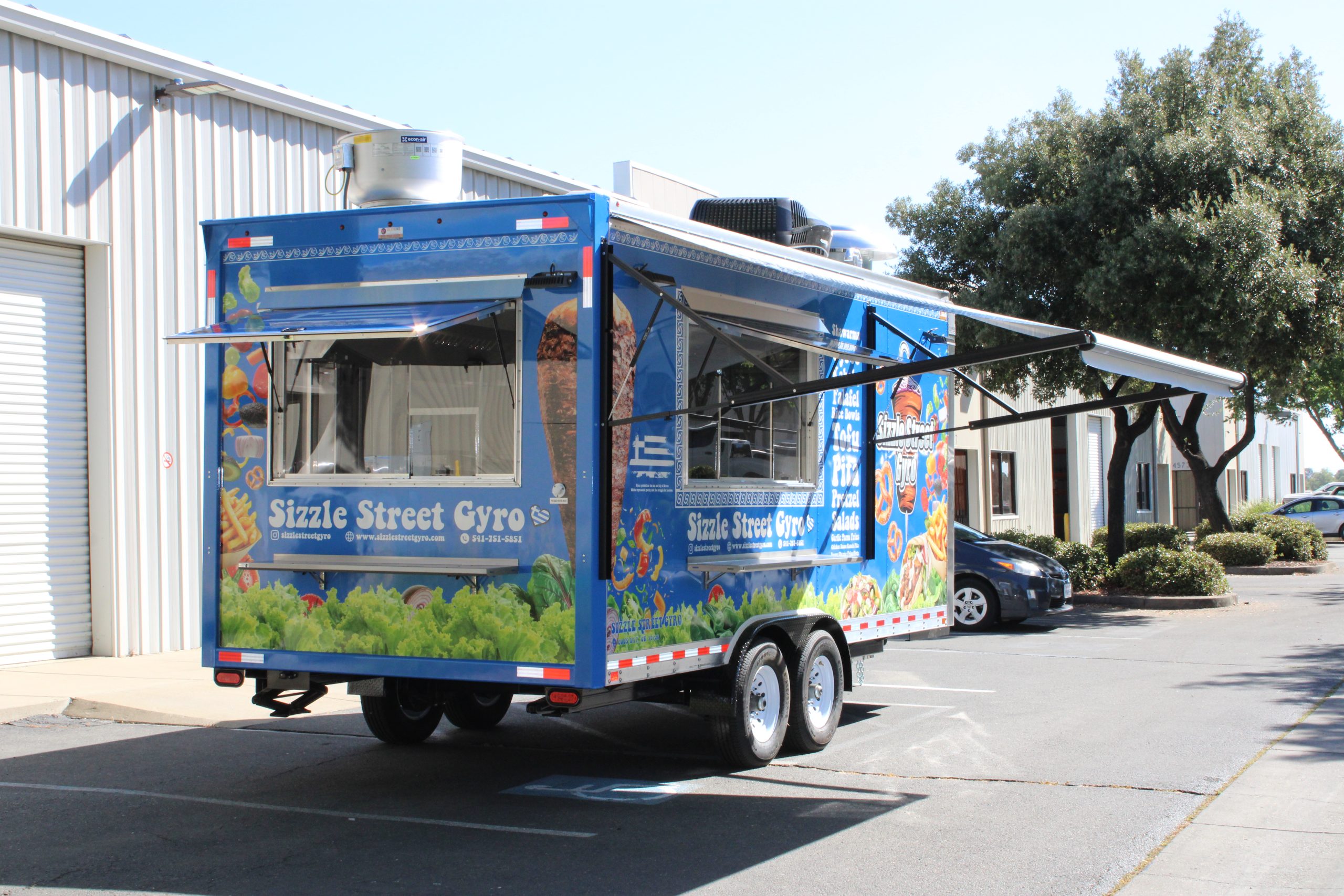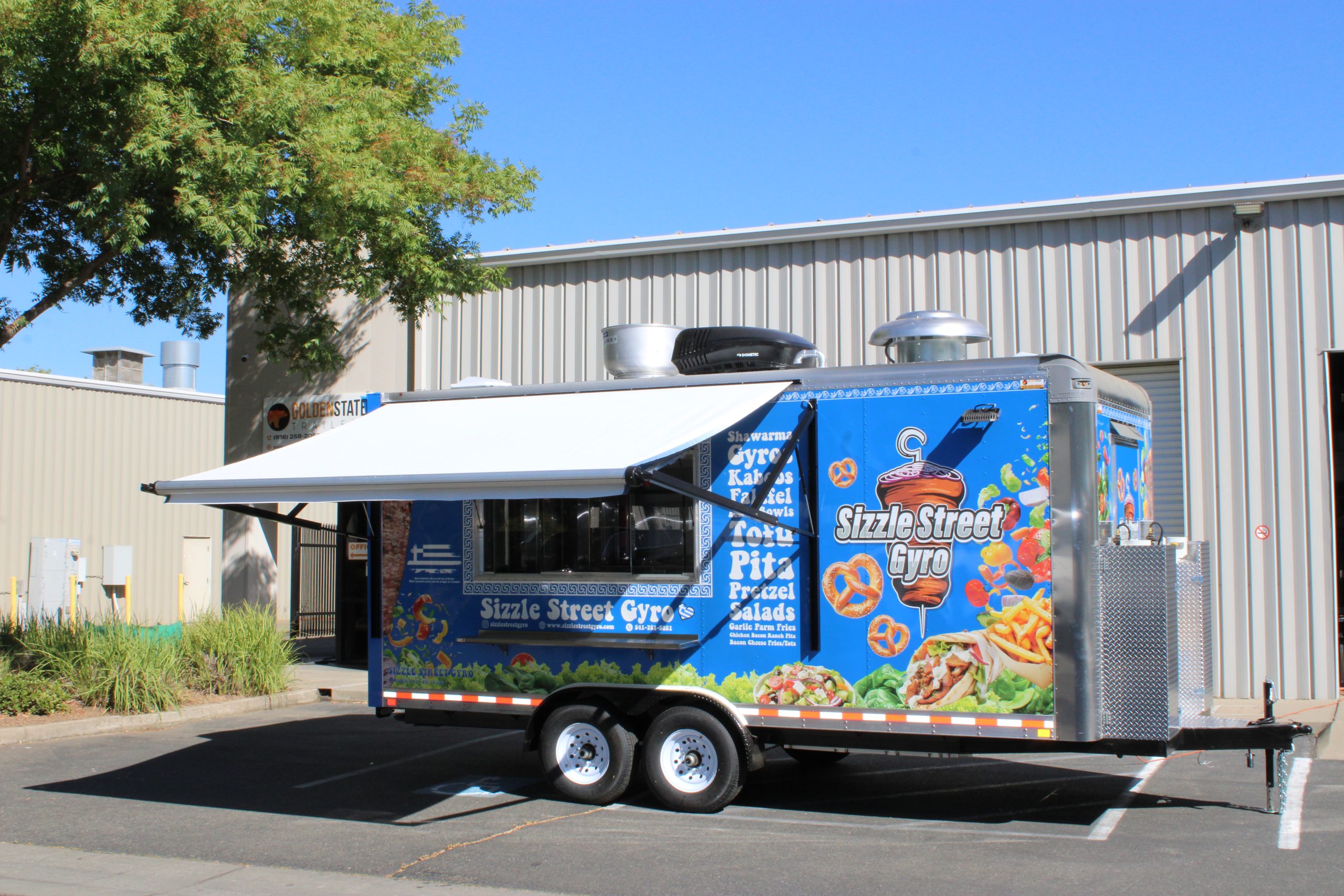 Golden State Trailers designed and built an 18ft Gyro Food Trailer for Sizzle Street Gyro in Coos Bay, OR.