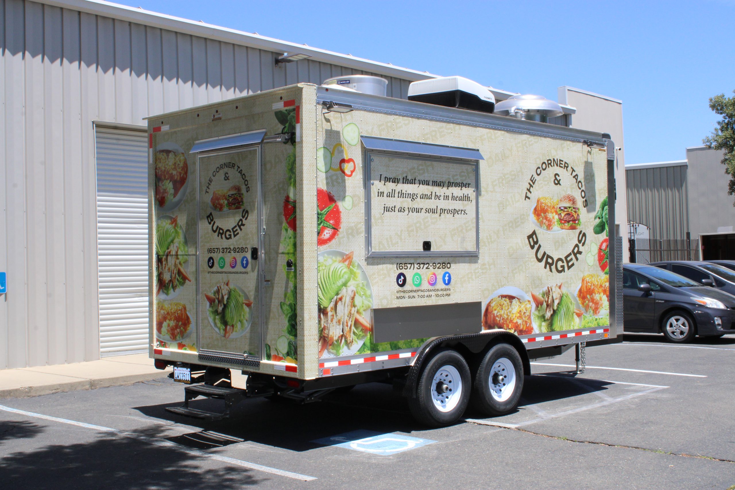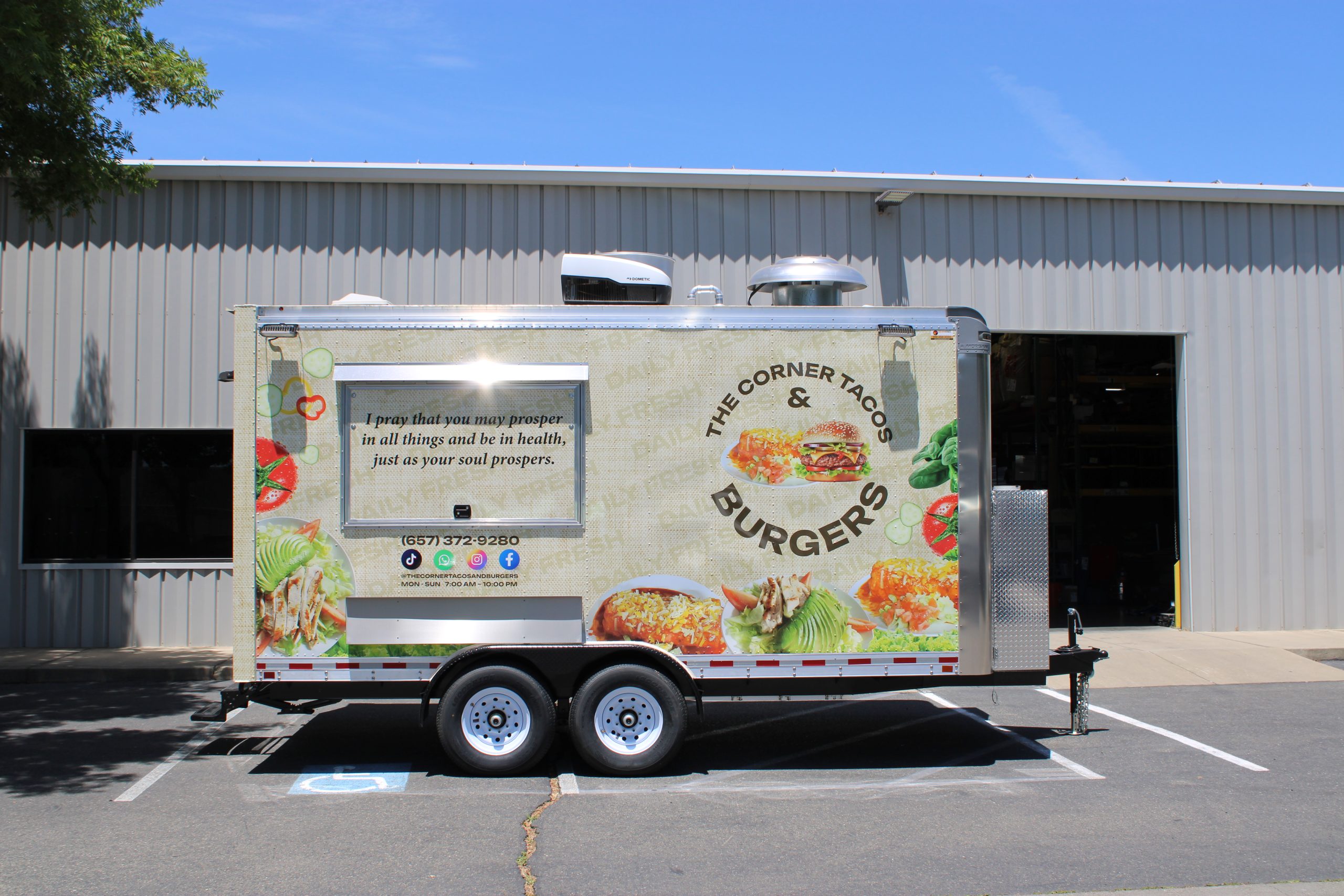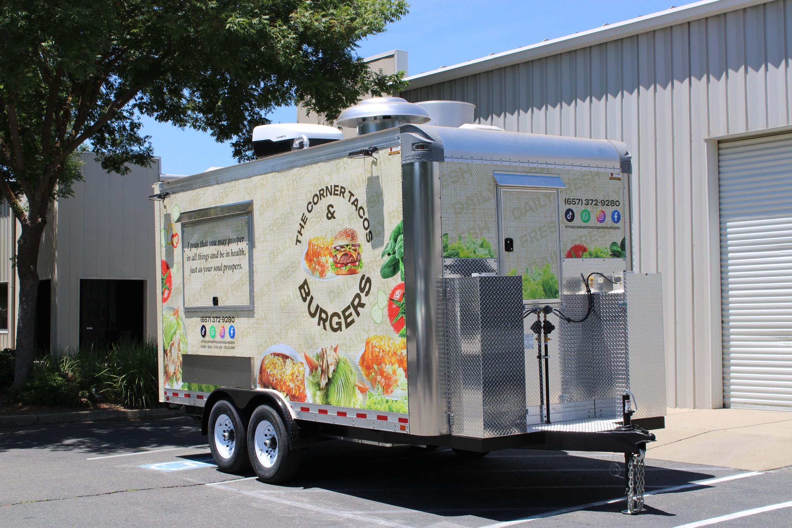 Golden State Trailers designed and built a 16ft Taco Food Trailer with an integrated Burger Food Trailer workflow for The Corner Tacos & Burgers.